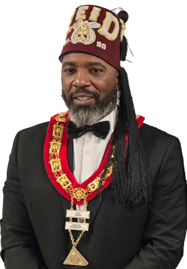 Illustrious Potentate Noble Famous R. Rucker Sr. Chief Rabban Noble Leighton Manning-Bey Assistant Rabban Noble Lonnie Florence Sr. Recorder P.P. Steven S. Pilate Sr. Treasurer Noble Kenneth E. L. Strong Jr. High Priest & Prophet Noble Joshua Milam Oriental Guide Noble Christopher Harper 1st Ceremonial Master Noble Mike Brown 2nd Ceremonial Master Noble MonTrey Nelson Captain of the Guard Noble Timothy Plato Outer Guard Noble Kameron Middleton Marshall Noble Saveno Seals